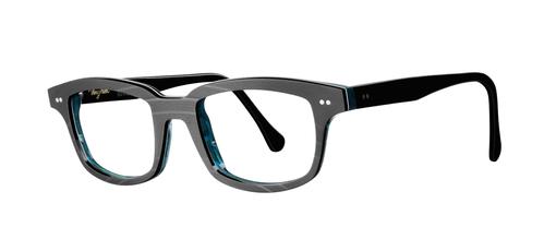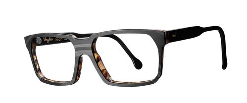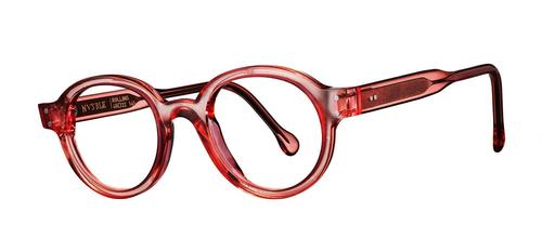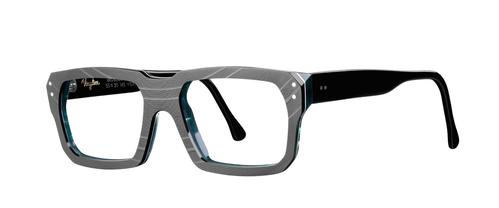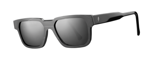 The eyeglass frame appears as a bold black frame from afar, and upon closer inspection individual tracks shimmer and shine.